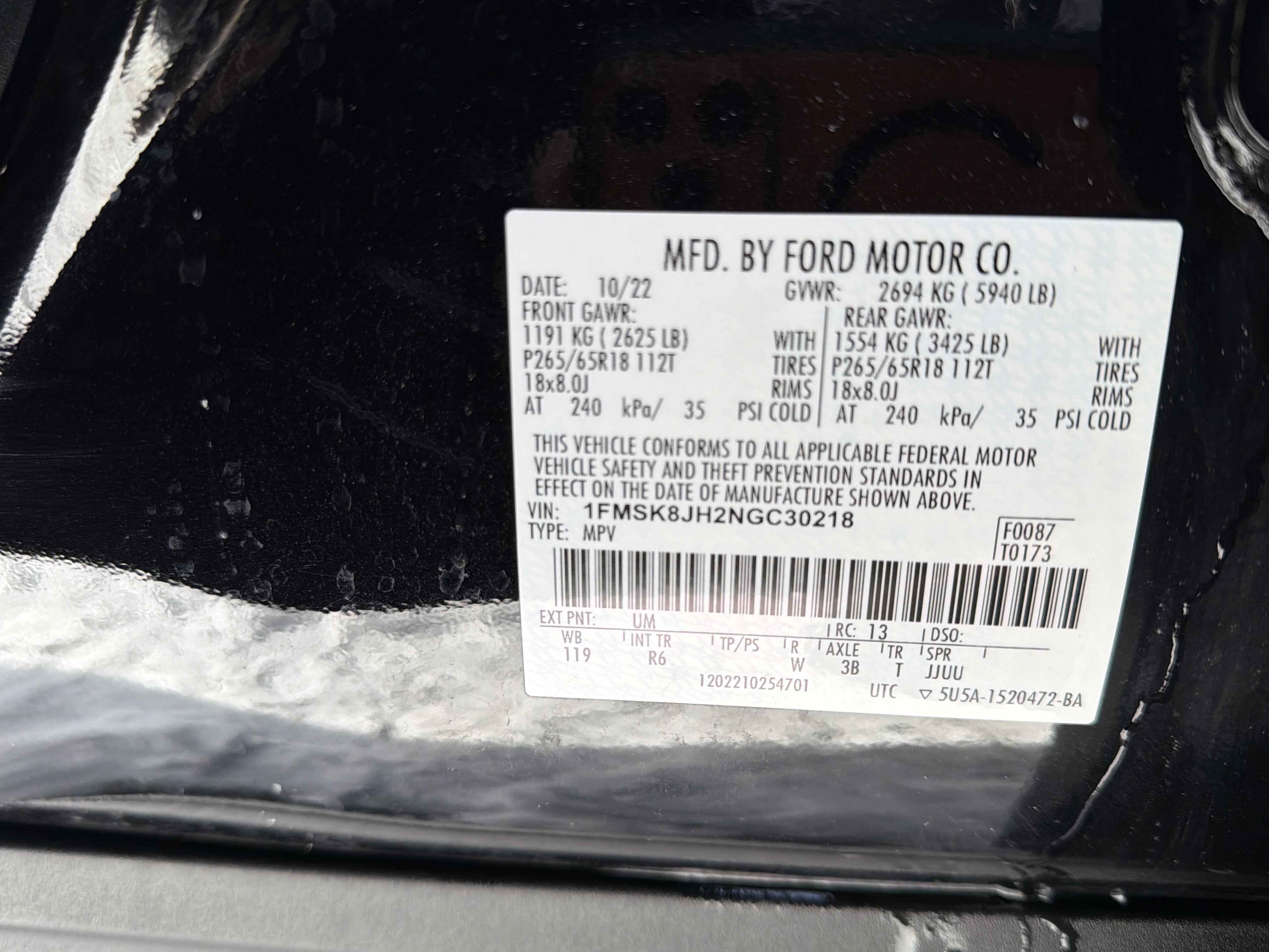 - Front Tire Size: P265/65TR18