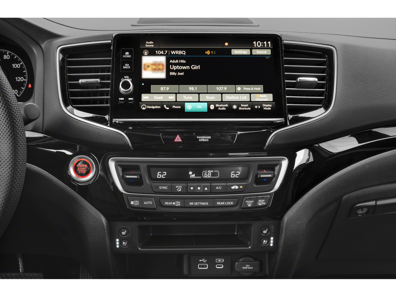 - Radio: 540-Watt Premium Audio System w/8 Speakers -inc: subwoofer, 9" color touchscreen, Bluetooth streaming audio, Speed-Sensitive Volume Compensation (SVC), wireless Apple CarPlay/Android Auto compatibility, HD Radio, 2.5A USB-A data port in front console, 3.0A USB-C charging port in front console and HondaLink