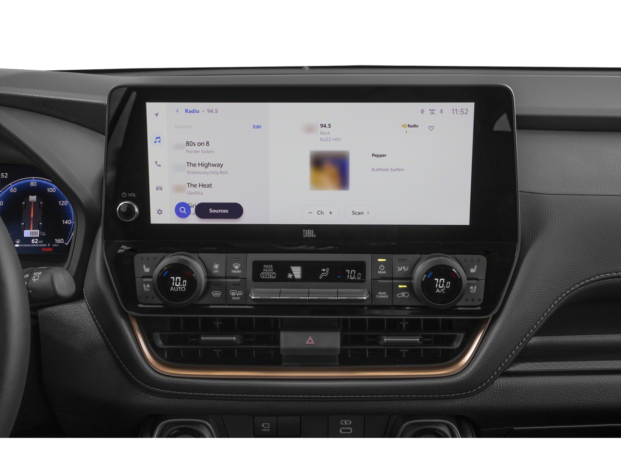 - Radio: 12.3" Toyota Audio Multimedia w/JBL Premium -inc: 11 speakers, voice activated commands, dual Bluetooth phone connectivity, wireless Apple CarPlay and Android Auto compatibility, HD Radio, USB and SiriusXM w/3-month platinum plan trial subscription