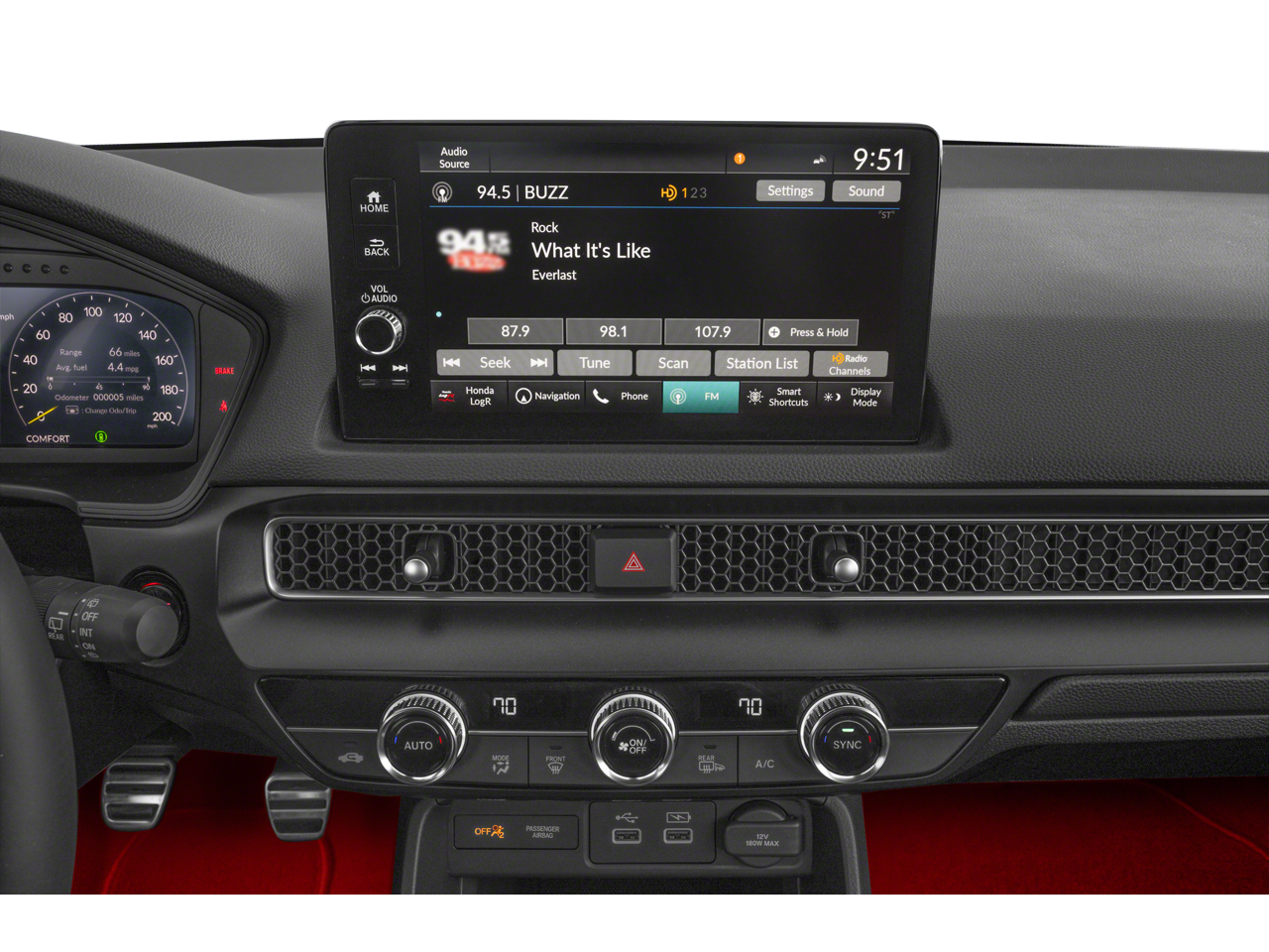 - Radio: Bose Premium Sound System w/SiriusXM -inc: 12 speakers w/subwoofer, 9" color touchscreen, Honda Satellite-Linked Navigation System w/voice recognition and Honda Real-Time Traffic, HondaLink, wireless Apple CarPlay and Android Auto compatibility, HD Radio, 2.5-amp USB-A smartphone and audio interface port in front console, Bluetooth HandsFreeLink and streaming audio, Radio Data System (RDS), Speed-Sensitive Volume Control (SVC) and Wi-Fi hotspot capability, Wi-Fi and Wi-Fi Direct are registered trademarks of Wi-Fi Alliance, Requires AT&T data plan, SiriusXM requires a subscription after any trial period, If you decide to continue your SiriusXM service at the end of your trial subscription, the plan you choose will automatically renew and bill at then-current rates until you call SiriusXM at 1-866-635-2349 to cancel, See our customer agreement for complete terms at www.siriusxm.com, Fees and programming subject to change, Available in the 48 contiguous United States and D.C, SiriusXM and all related marks and logos are trademarks of SiriusXM Radio Inc
